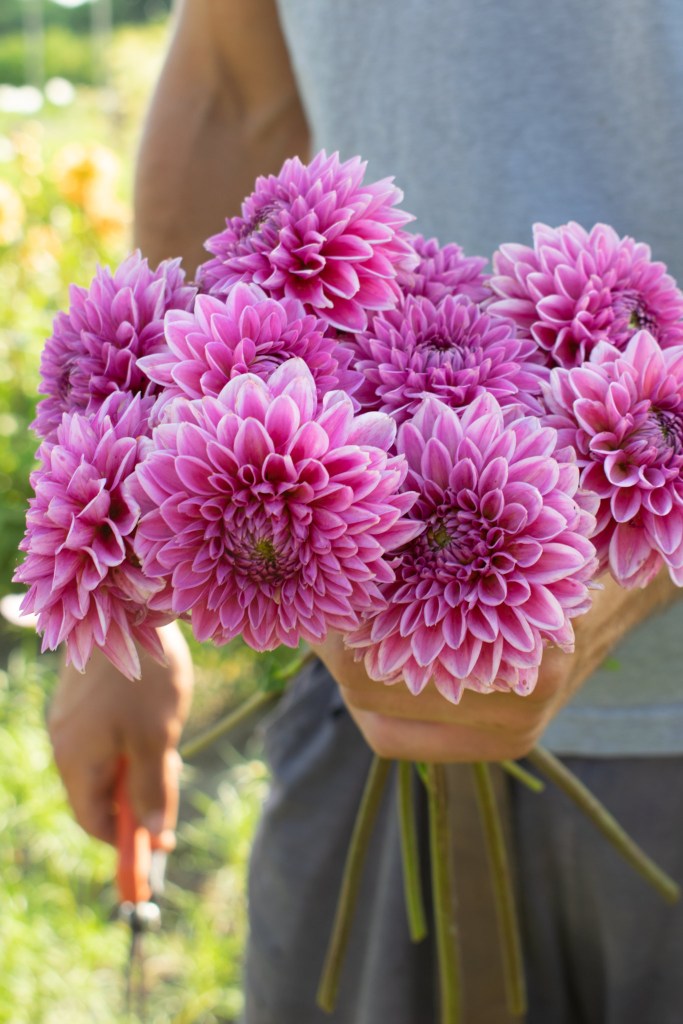 L’estate è la stagione delle Dalhie che nel nostro giardino sono presenti in grandi quantità di diverse varietà e colori. Insieme a Zinnnie, Comos, Verbene e tanti altri fiori possiamo dare sfogo alla creatività nell’accostarli in originali composizioni e allestimenti.