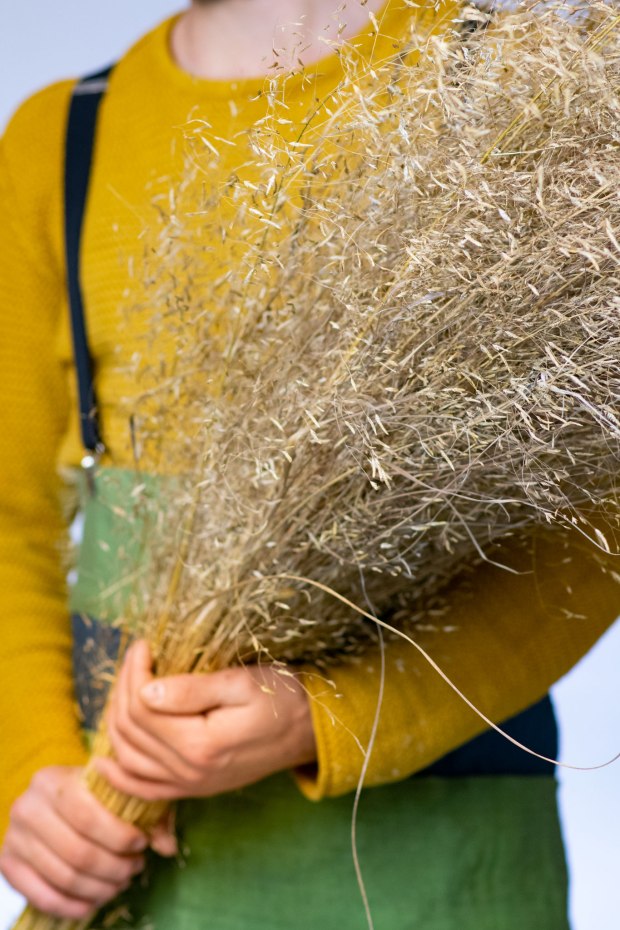 Nella composizione troviamo: Anemone Japonica, Crespedia Globosa, Echincea, Lepidium, Nigella, Papavero, Pragmites, Setaria e Solidago.
