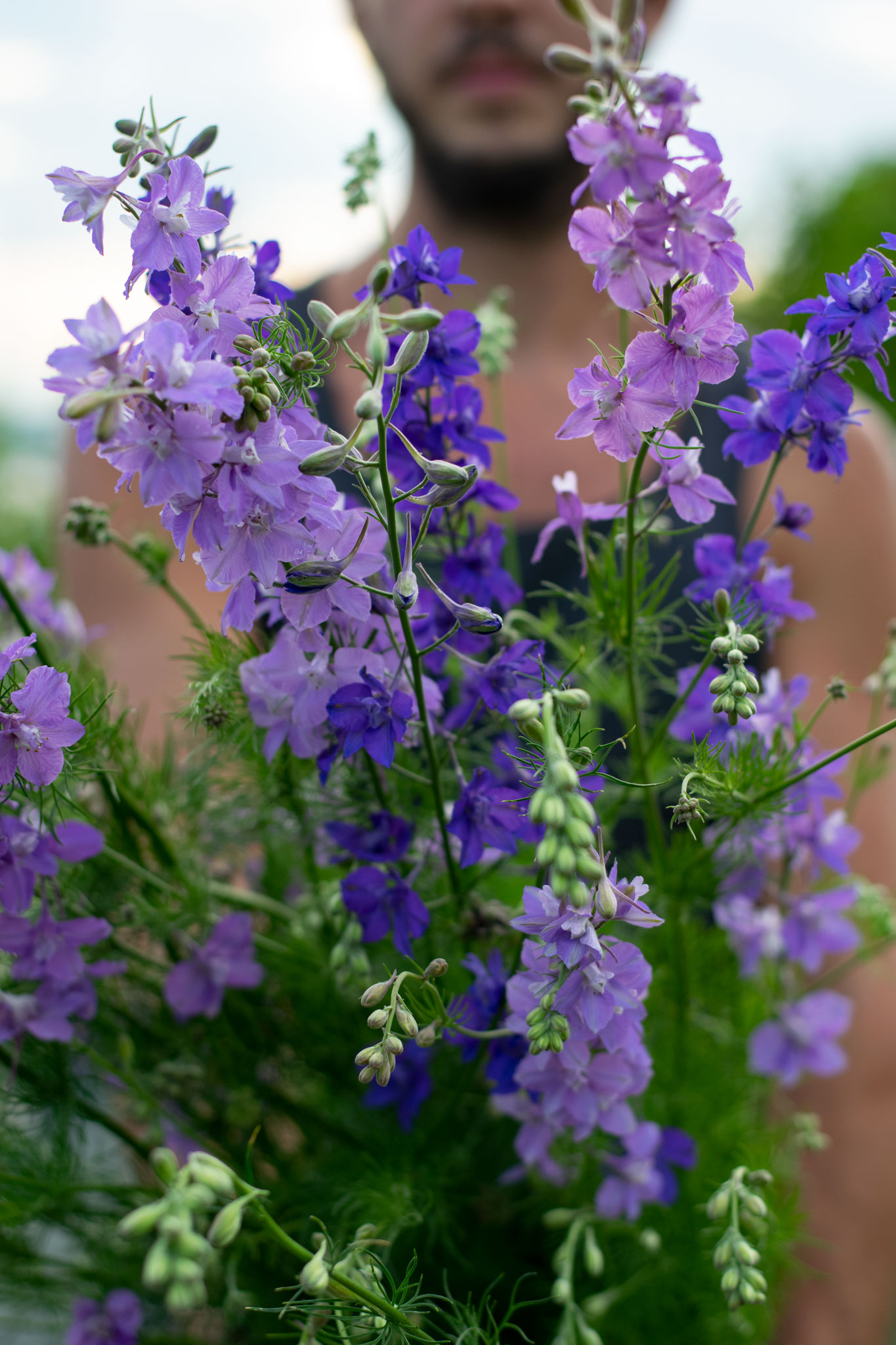 In campo, nel frattempo, iniziano i lavori di semina e trapianto di Zinnie, Cosmos e molte altre varietà, che ci accompagneranno verso un’estate ricca e generosa di fiori. Sul finire della stagione, sbocciano le Peonie e le delicate Rose Inglesi, regalando eleganza e romanticismo ai nostri campi e segnando il passaggio verso i mesi più caldi.